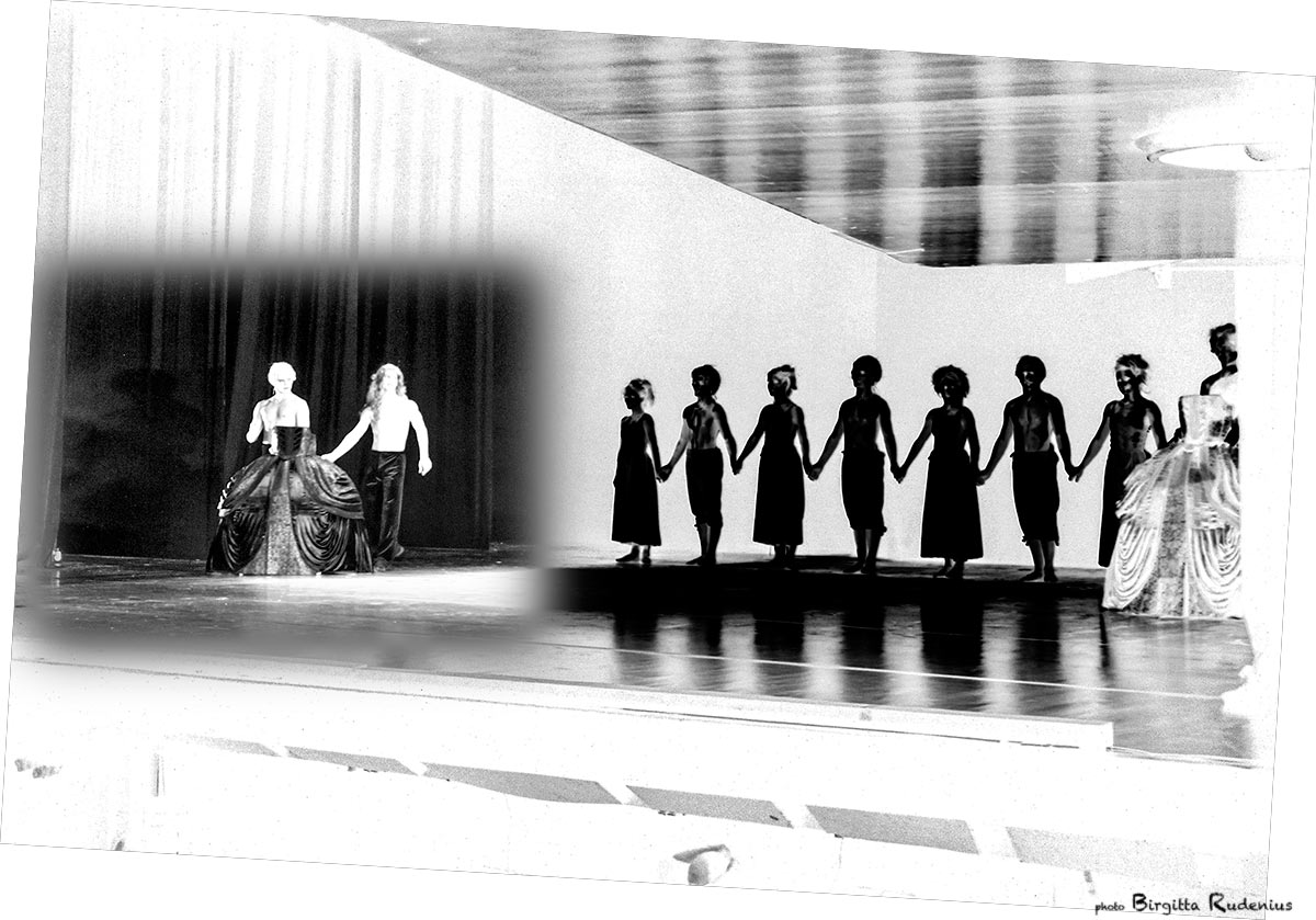 Bilden på Onsdagstema är ett utsnitt ur denna bilden som jag tog vid baletten ”5 danser” i Budapest. Otroligt kreativt skapad föreställning. Klänningarna här är skapelser på hjul som rullas över scenen. Dansarna ställer sig bakom och det ser ut som om de är klädda i klänningen.