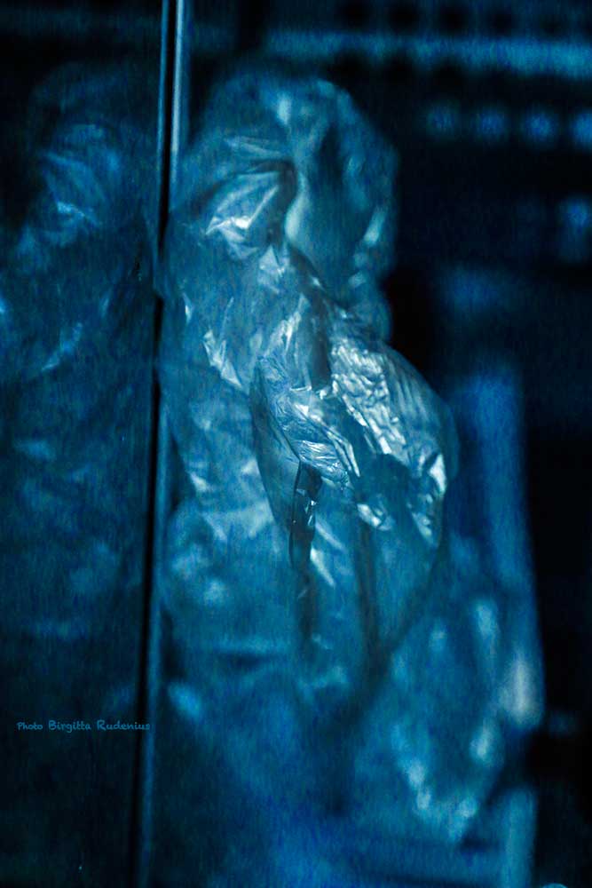 Hon går genom livet med bestämda steg. Hon hoppar över alla svårigheter och springer ifrån alla faror . För henne finns bara Livet och det ska levas väl. Människor – som innebär faror och människor som kan innebära svårigheter – klär hon in i svarta plastsäckar. De lämnas därhän. Där de hör hemma. I Plastsäcksparken för onyttigheter. För henne finns bara det bekymmerslösa Livet. Tills plastsäckarna tar slut.