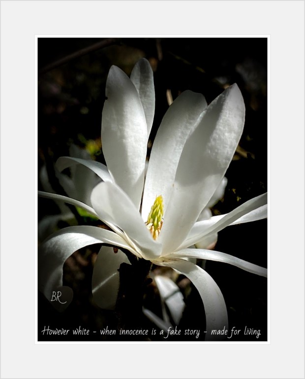Made for living However white – when innocence is a fake story – made for living. Carpe Diem: First blossom.