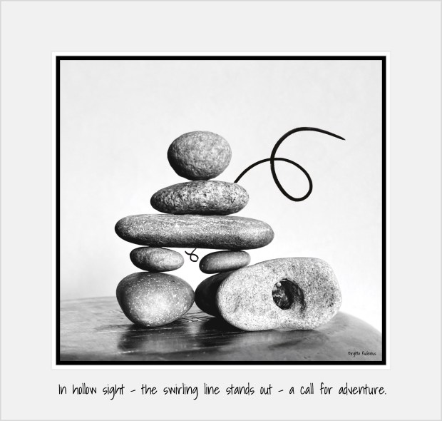 Call for adventure In hollow sight – the swirling line stands out – a call for adventure. Skrivpuff: Gris. …. knorr …. ngt extra i tillvaron … lite långsökt men …. 😉