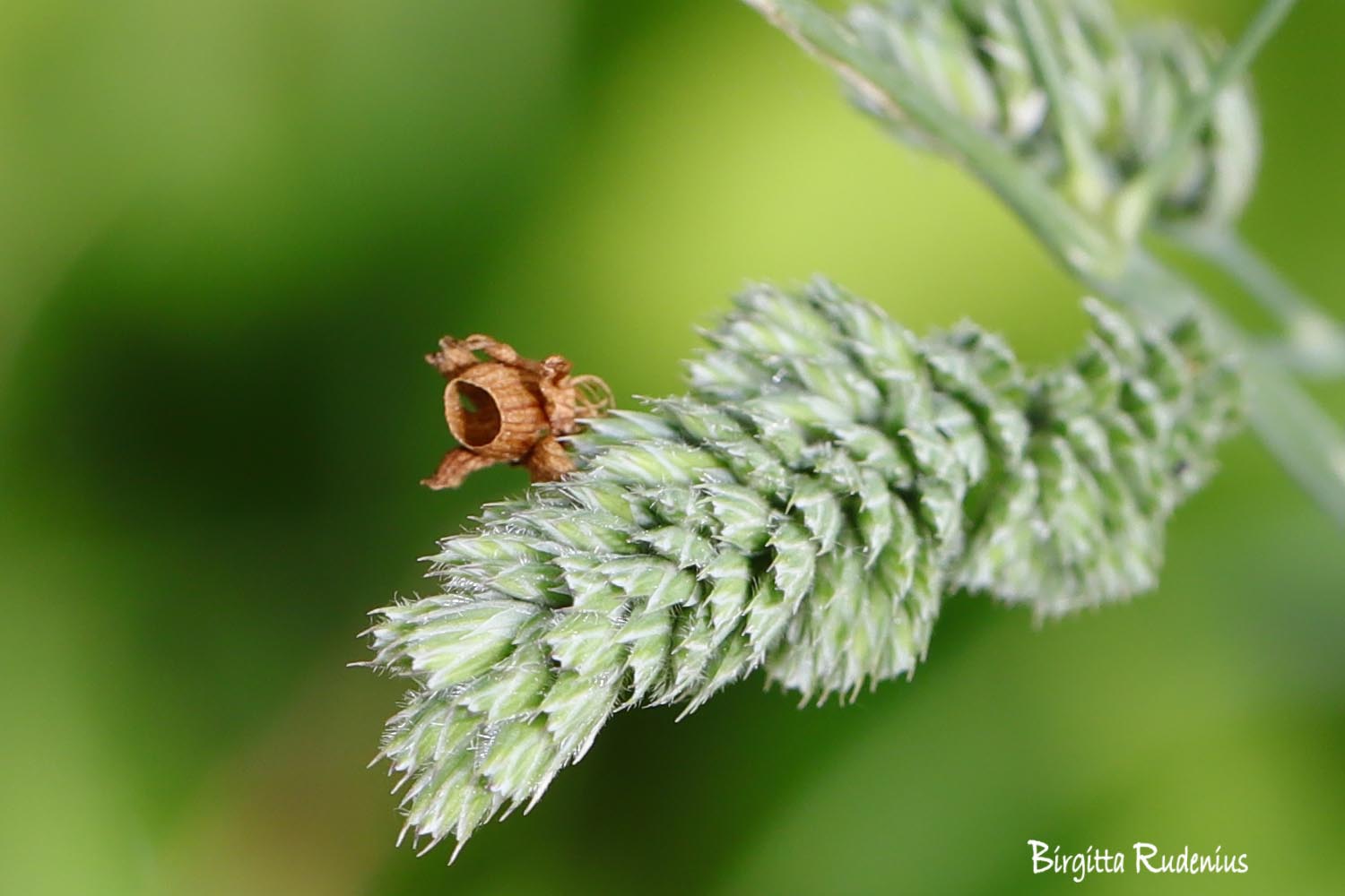 När jag först betraktade denna lilla bruna avskalade sak trodde jag det var ett fjärilshuvud. Så såg det ut från andra hållet. Men troligen är det en ‘avskalad’ blom- eller växtdel som hamnat på gräsetaxet.