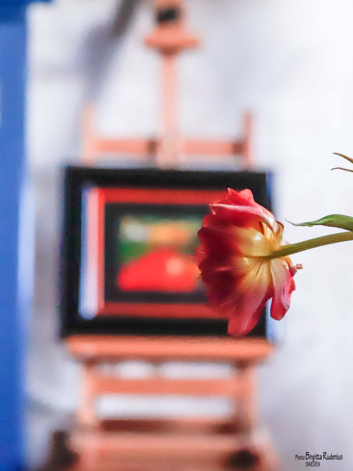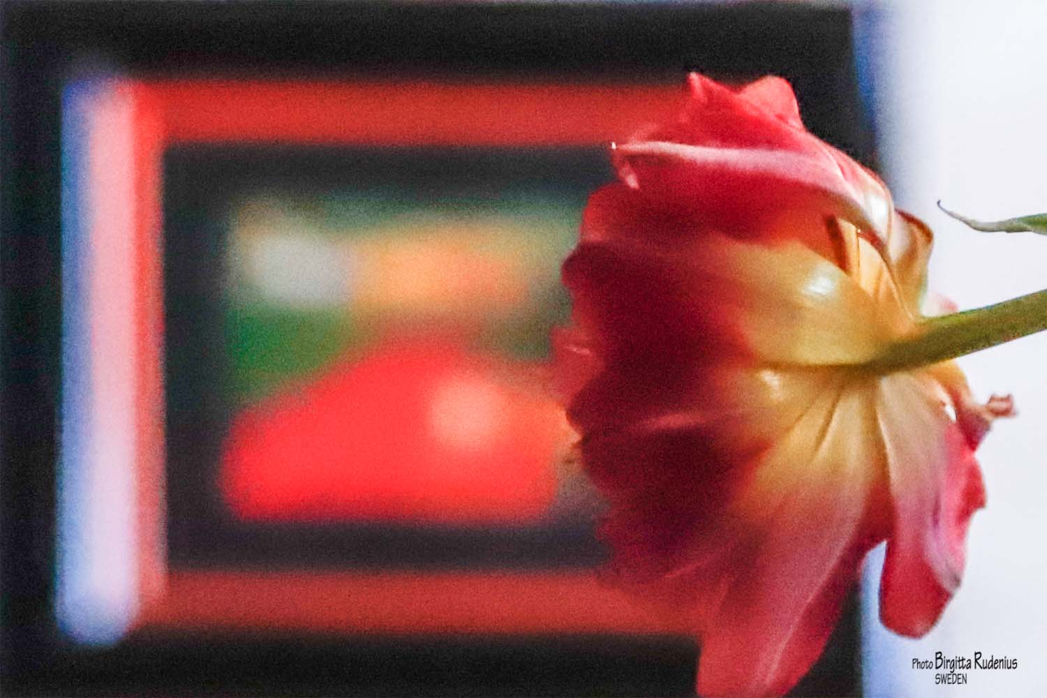 Just här har jag två fjäderspröt samt torkade rosblad i glaset. Jag har legt med ursprungsbilden i Photoshop.