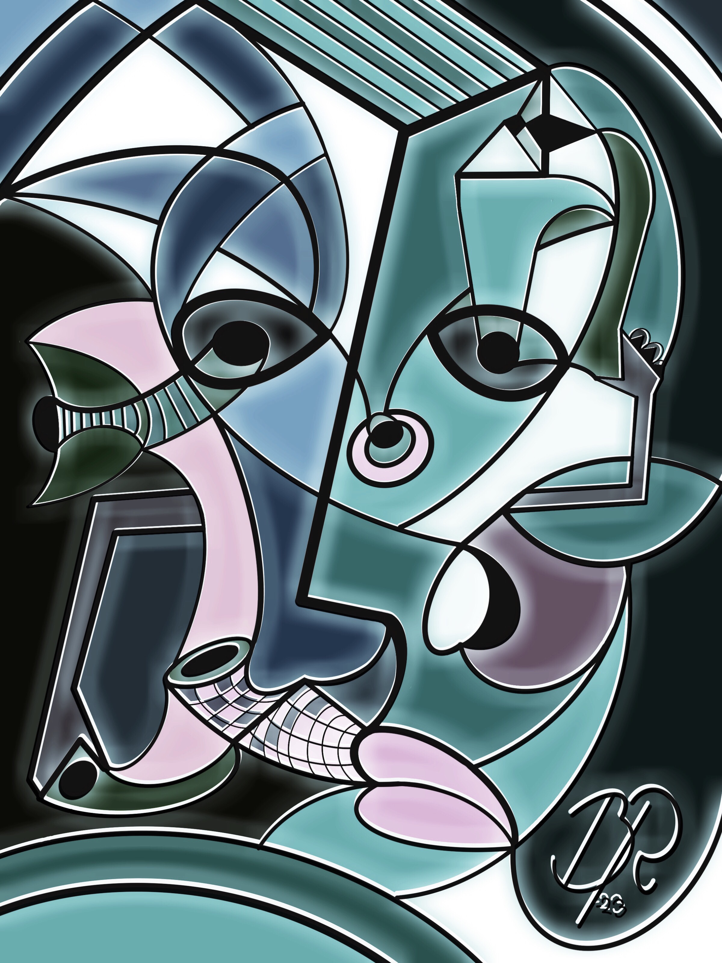 Här testade jag en pensel och gjorde en krusidull som sedan utvecklades. Den kan alltid utvecklas vidare. Ingen bild/skiss är konstant. Den lever sitt eget liv. Har behov av att utvecklas. Precis som jag. Bilden ligger under ”Face Life & AI”.