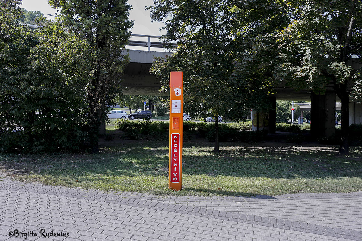 En ny upptäckt i Budapest. Här kan man snabbt ringa upp om man utsatts för någon fara. Den står i en liten park längs Donau på Budasidan. Mellan Elisabethbron och Kedjebron.